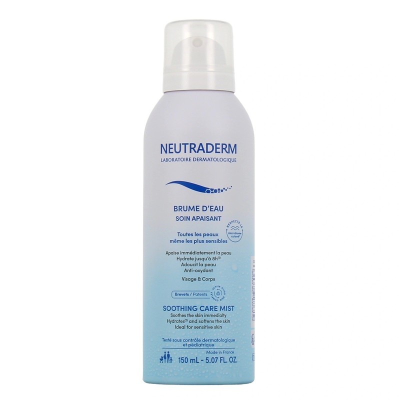 Neutraderm Soothing Care Mist 150 ml is a care mist for the face and body. This water spray soothes sensitive skin from sensations of overheating, irritation and itching, and instantly refreshes thanks to its fine spray. It moisturises for up to 8 hours.