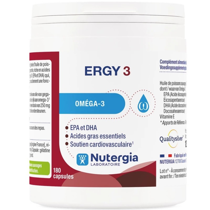 Nutergia Ergy 3 180 Capsules is a dietary supplement based on wild fish oil.