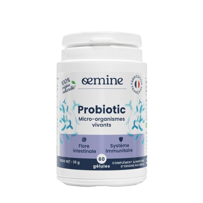 Oemine Probiotic 60 Capsules is a natural dietary supplement based on concentrated lactic ferments, 5 billion gastro-resistant bacilli per capsule.