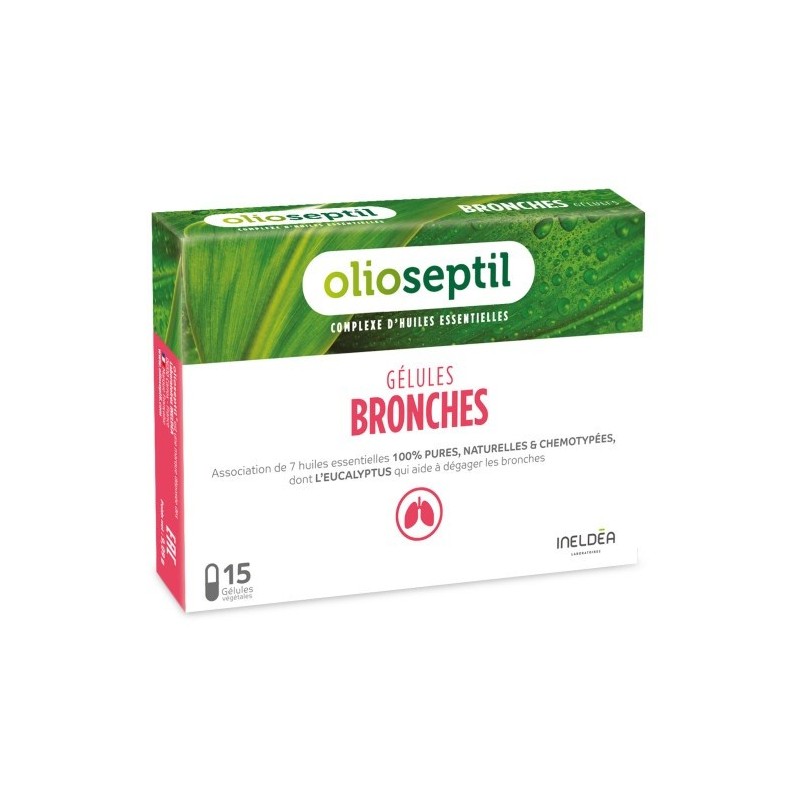 Olioseptil Bronchial 15 Capsules participates in the cleansing and optimal functioning of the respiratory system, helps to clear the bronchi.He is a complex of 100% pure and natural chemotyped essential oils, microemulsified on a base of 1st cold-pressed olive oil, in a vegetarian capsule. This complex contains, in particular, Eucalyptus radiata essential oil, which helps to clear the bronchial tubes, and Thyme and Scots Pine essential oils, which contribute to the purification and optimal functioning of the respiratory system, for a complementary action.