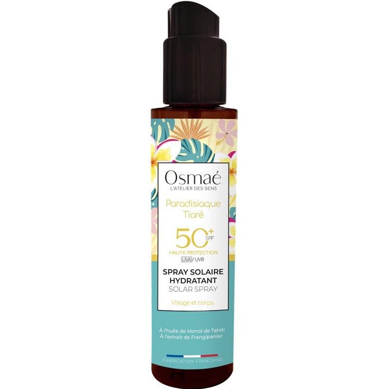 Osmaé Solar Spray Heavenly Tiara SPF50+ 150 ml offers very high UVA and UVB protection. With Monoi oil and frangipani flower extract for soft, moisturised skin. No white marks. From age 3. Its ultra-light texture with an invisible finish reveals a heavenly tiara fragrance with an addictive heart of Tiaré flowers enhanced by powdery vanilla notes.