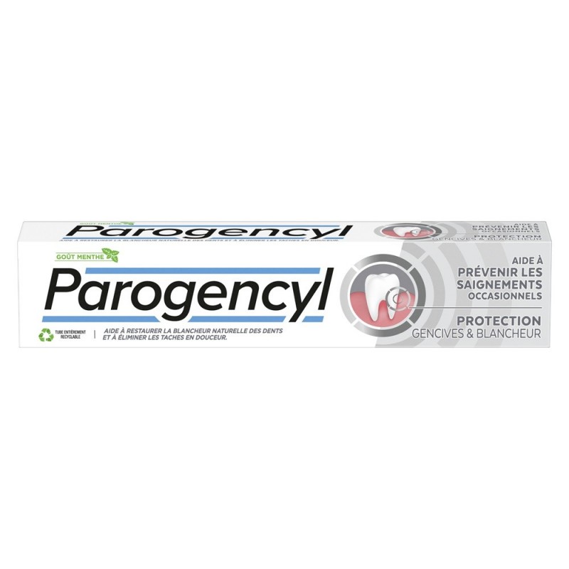 Parogencyl Gum Protection & Whitening Toothpaste 75 ml helps to preserve healthy gums while helping to restore the natural whiteness of teeth. This toothpaste helps prevent occasional gum inflammation and limits plaque build-up. This toothpaste contains 3% zinc mineral and 1450ppm fluoride.