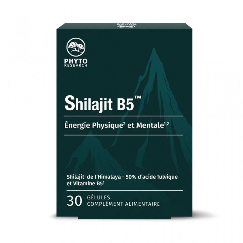 Phytoresearch Shilajit B5 30 Capsules is a dietary supplement combining vitamin B5 with shilajit. The synergy of Shilajit and vitamin B5 is particularly interesting for people who are tired, have a loss of energy or are physically or mentally overworked, for sportspeople and/or active people, but also for people looking for a natural and valuable energiser.