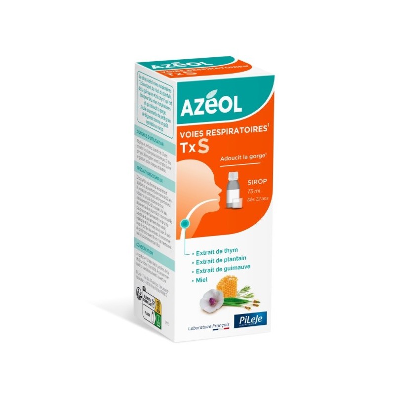 Pileje Azéol Dry Cough Syrup 75 ml is a dietary supplement that contains marshmallow and helps to soothe in the event of a dry cough. The marshmallow extract selected comes from the roots (althaea officinalis L.). To make this syrup, we have also selected flower honey, as well as the leaves for the plantain extract (plantago lanceolata L.). The natural flavour of petitgrain bigarade is obtained from the essential oil extracted from the aerial parts of petitgrain bigarade (citrus aurantium ssp amara L.).