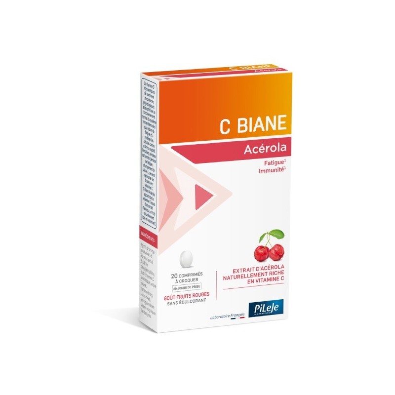 Pileje C Biane Acerola 20 Tablets is a dietary supplement rich in natural vitamin C (acerola).