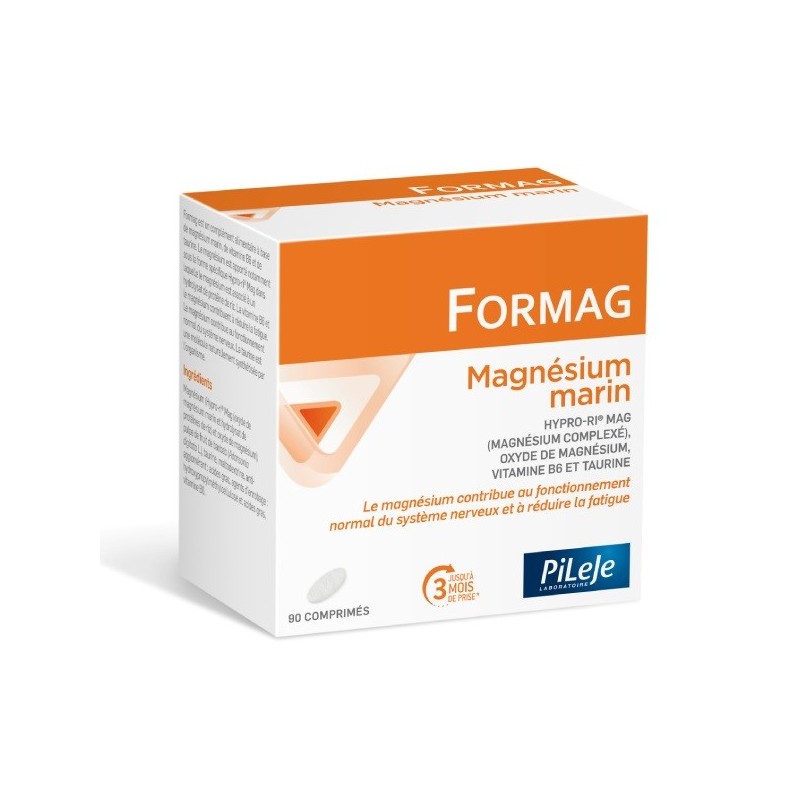 Pileje Formag Marine Magnesium 90 Tablets is a magnesium-based dietary supplement that contributes to the normal functioning of the nervous system and reduces fatigue.