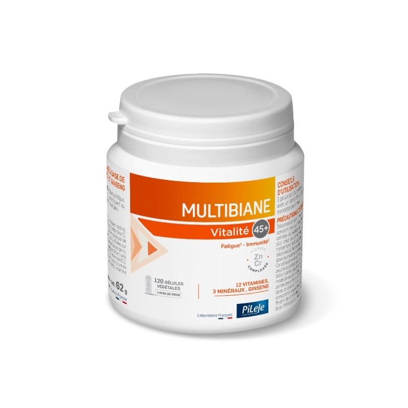 - To promote physical and intellectual tone, Pileje Multibiane Vitalité 45+ also contains ginseng.