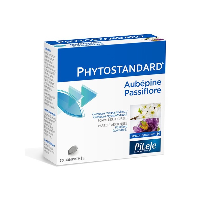 Pileje Phytostandard Aubépine et de Passiflore 30 Tablets is a dietary supplement based on hawthorn and passionflower extracts.