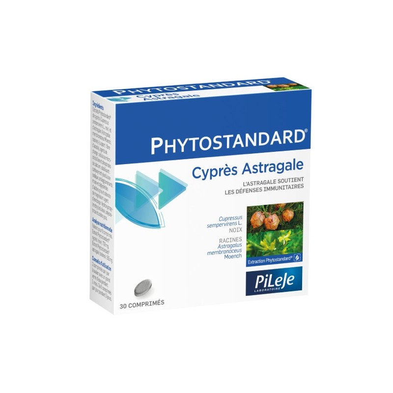 Pileje Phytostandard Cyprès - Astragale 30 Tablets is a dietary supplement based on extracts of cypress and astragalus.