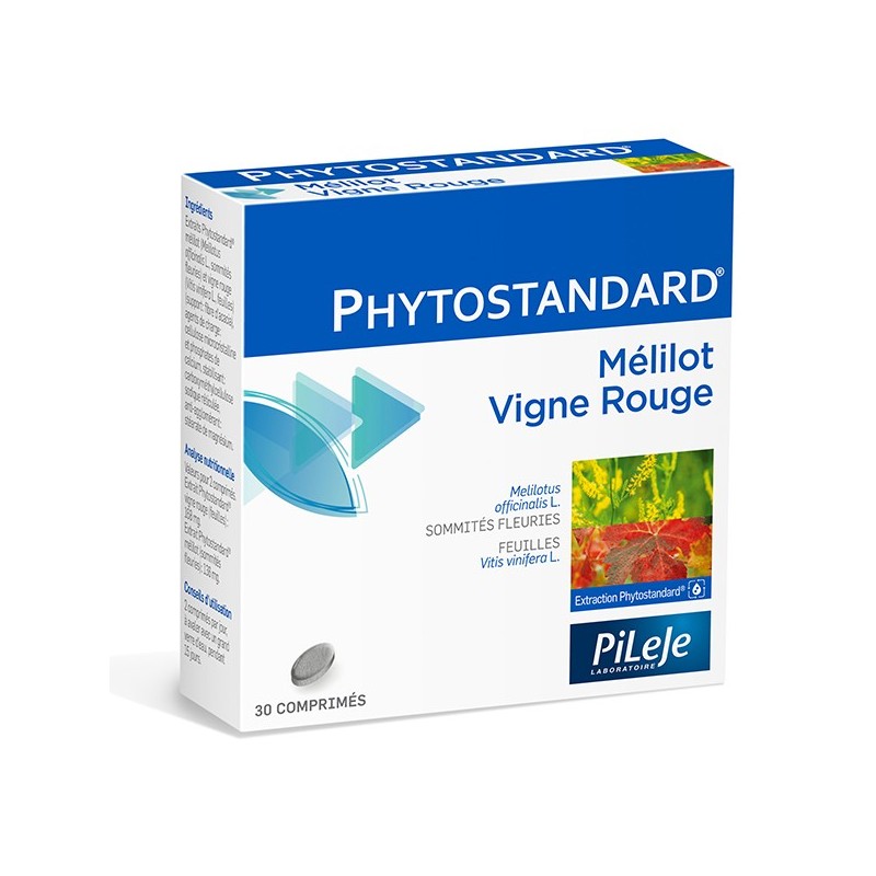Pileje Phytostandard Mélilot - Vigne Rouge 30 Tablets is a dietary supplement based on extracts of melilot and red vine.