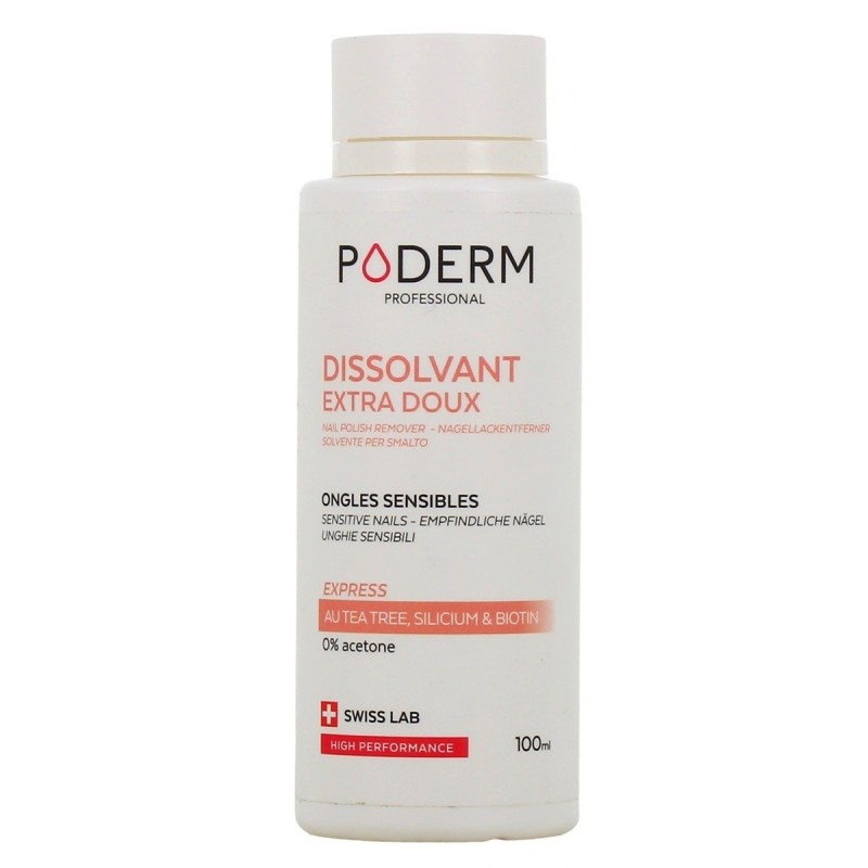 Poderm Extra Gentle Nail Polish Remover 100 ml quickly and effectively removes all traces of nail polish, while softening and protecting the nail and cuticle. Formulated without acetone, it leaves a soft, moisturised feeling on the nail, ensuring quick and easy use.