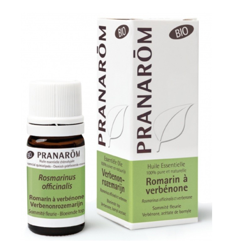 Pranarôm Essential Oil Rosemary Verbenone Organic 5 ml. Rosemary is a vigorous perennial plant with needle-like grey-green leaves and whitish to blue flowers that thrives in a marine climate. Its biochemical composition is strongly influenced by its geographical origin.