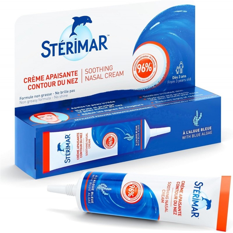 Stérimar Soothing Nasal Cream 12,5 ml soothes irritated skin, moisturises and protects the skin around the nose and reduces signs of redness. Non-greasy, non-shiny formula. Dermatologically tested.