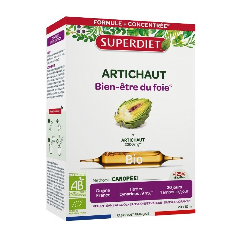 Superdiet Artichoke Organic 20 Vials is a dietary supplement that promotes healthy liver function. Artichoke promotes the well-being of the liver, known to support its proper functioning.