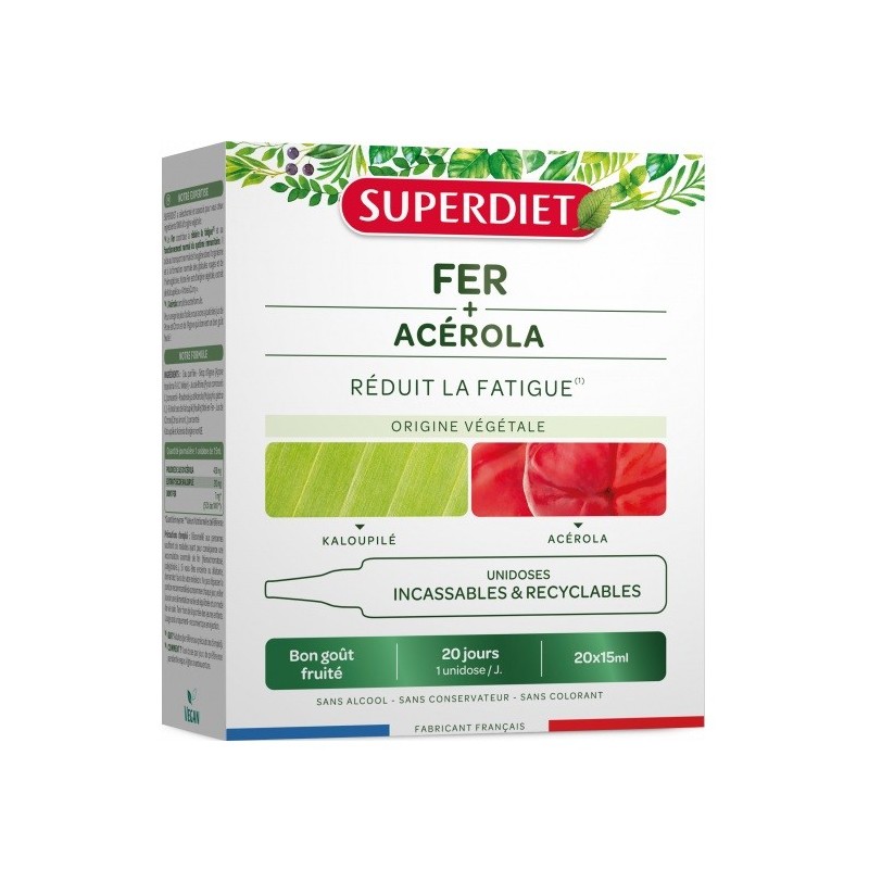 Superdiet Iron + Acerola 20 Single-dose helps to reduce fatigue and boost the immune system.