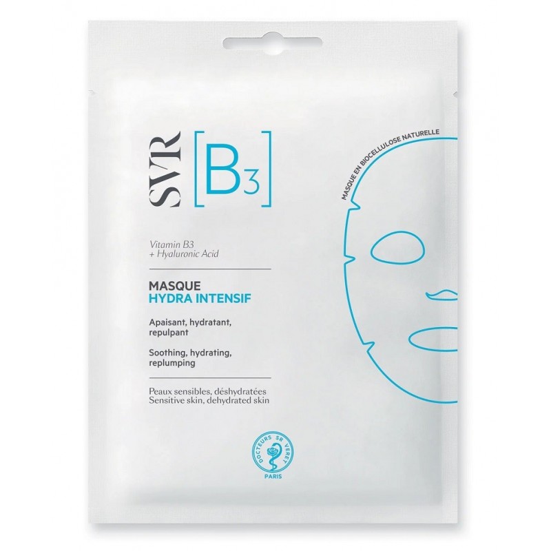 Svr [B3] Hydra Intensive Sheet Mask 6 x 12 ml is an intensive moisturising face mask with vitamin B3. Sensitive skin, dehydration, lack of comfort, dehydration wrinkles.