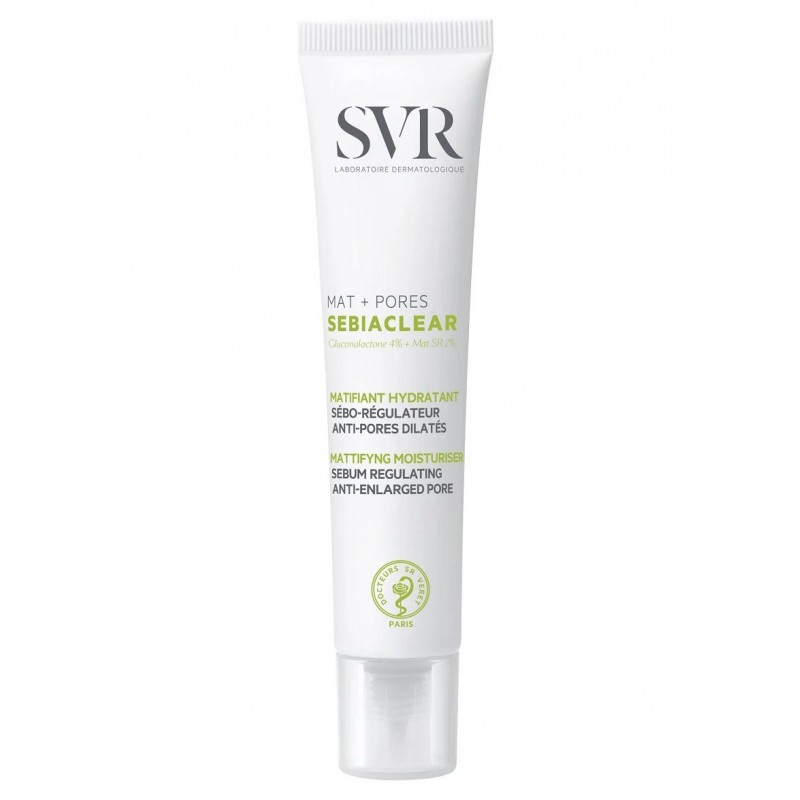 Svr Sebiaclear Matt+Pore 40 ml is a mattifying skincare product specially designed to visibly reduce pores and control skin shine. For combination to oily skin, even sensitive skin. Pimples, pores, shine. Face.