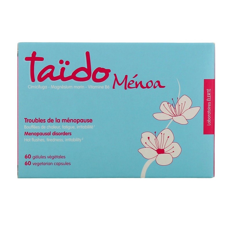 Taïdo Menoa 60 Vegetarian Capsules is a dietary supplement that helps relieve menopausal disorders: hot flushes, sweating, irritability, nervousness.