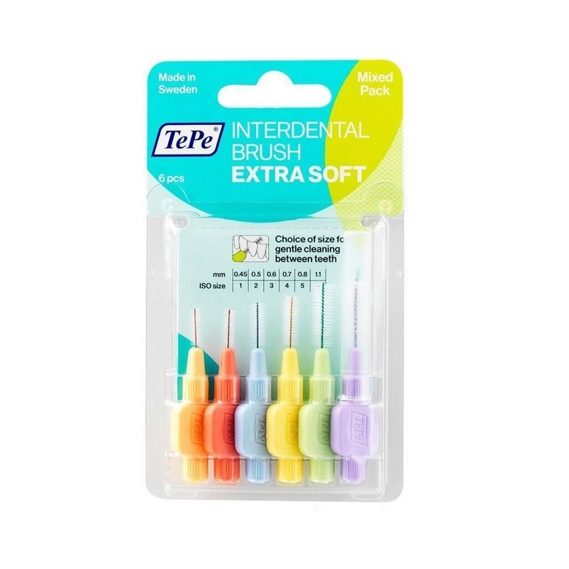 TePe Interdental Brush Extra Soft Mixed Pack is a small brush specially designed to clean the spaces between teeth that are impossible to reach with a normal brush. Using an interdental brush every day, in addition to brushing, is a quick and effective way to keep your gums and teeth fresh and healthy. Cleaning with an interdental brush prevents gum inflammation, cavities and bad breath.