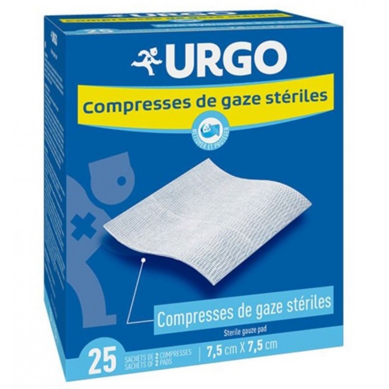 URGO STERILE GAUZE COMPRESSES 7.5 CM X 7.5 CM BOX OF 25