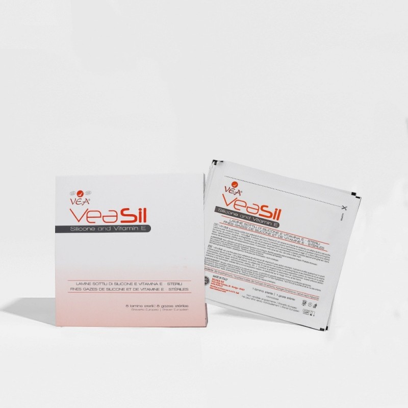 Vea Veasil 8 Compresses is an emollient, moisturising and soothing pruritus treatment. Its silicone and vitamin E-based formula helps to reduce and prevent hypertrophic scars and keloids of all origins (surgical, traumatic, burns, acne or stretch marks). It is also suitable in the event of redness due to overexposure to the sunscreen, UV rays or after cosmetic treatment (laser, radiofrequency, peeling, etc.).