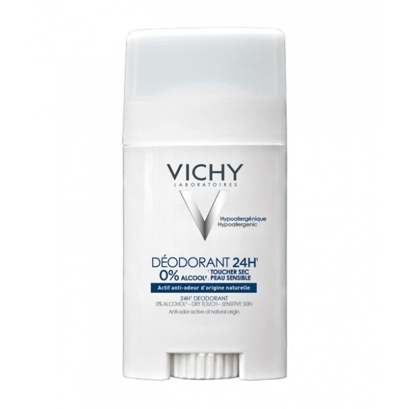 Vichy 24H Dry Touch Deodorant Stick 40 ml fights odours for 24 hours while respecting your skin, even sensitive skin.