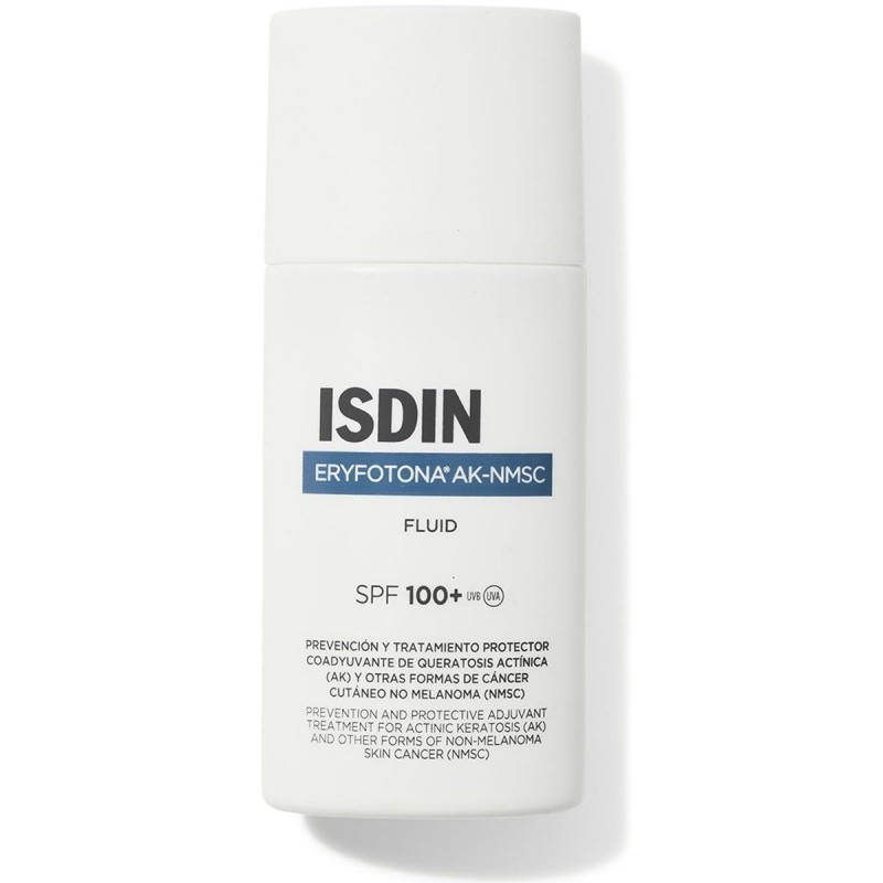 Isdin Eryfotona AK Fluid SPF100+ 50 ml est une crème solaire fluide qui prévient et répare le dommage actinique. Elle réduit et améliore le champ de cancérisation subclinique associé à la kératose actinique et au cancer cutané non mélanome.
