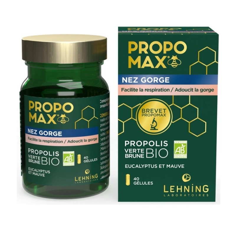 Lehning Propomax Nez Gorge 40 Gélules facilitent la respiration et adoucissent la gorge.