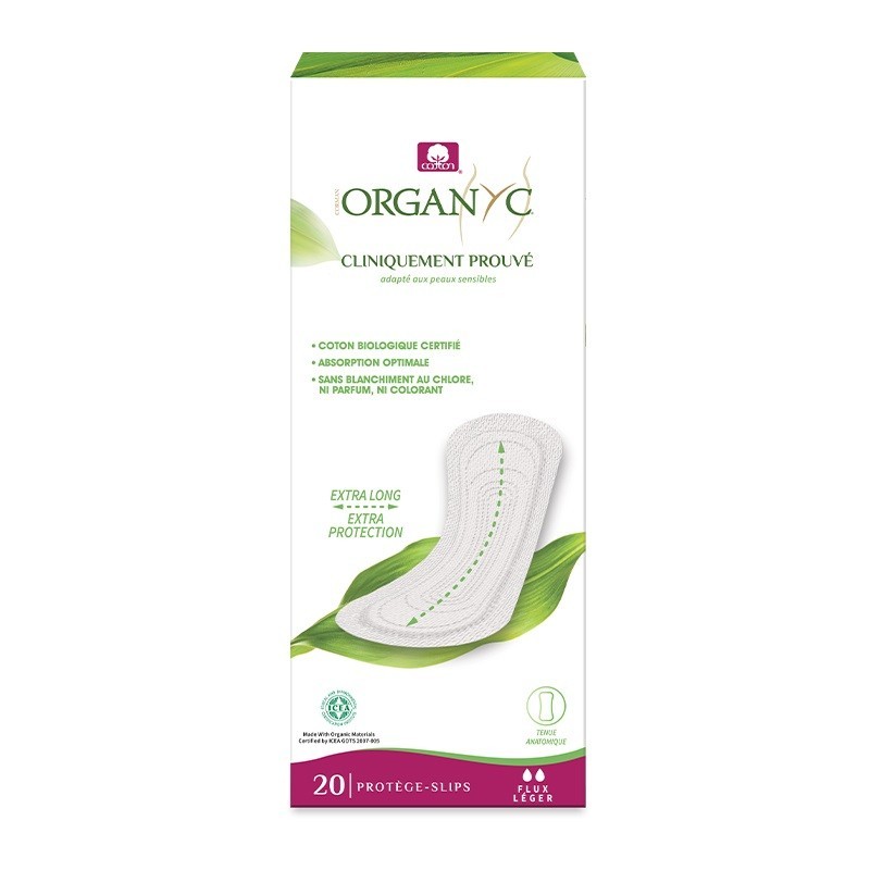 ORGANYC FUITES URINAIRES 20 PROTÈGE-SLIPS EXTRA LONG FLUX LÉGER