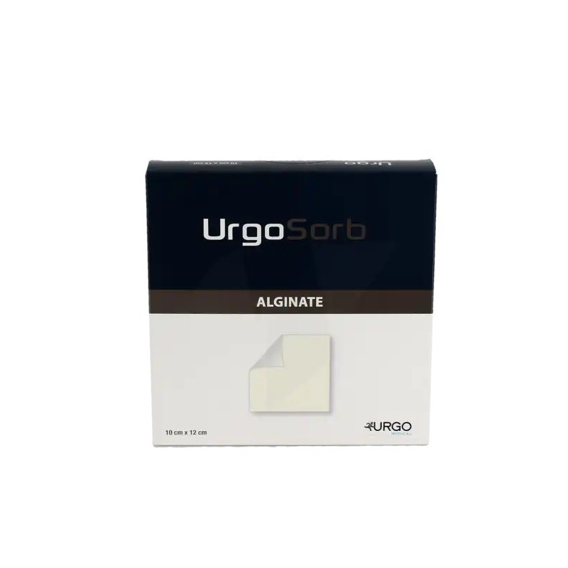 Urgo Urgosorb 10 cm x 12 cm est un pansement drainant à base d’alginate de calcium et de particules hydrocolloïdes pour la détersion et la cicatrisation des plaies fortement exsudatives, l'hémostase des plaies aigues ou chroniques hémorragiques. Existe en 5 dimensions: 5cm x 10cm, 10cm x 12cm, 10cm x 20cm, 5cm x 30cm.