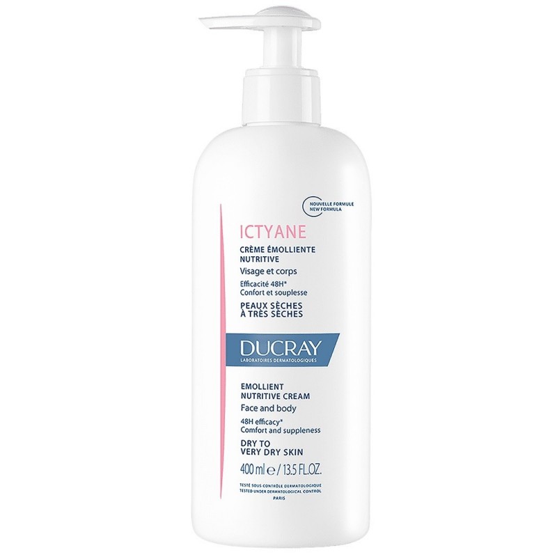 Ducray Ictyane Crème Emolliente Nutritive 400 ml est un soin nutritif quotidien des peaux sèches à très sèches pour le visage et le corps.