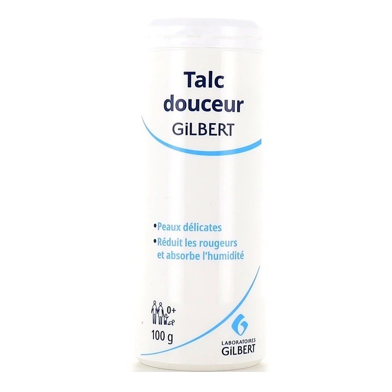 Gilbert Talc Douceur 100 g est particulièrement adapté à l'hygiène et aux soins quotidiens du bébé.