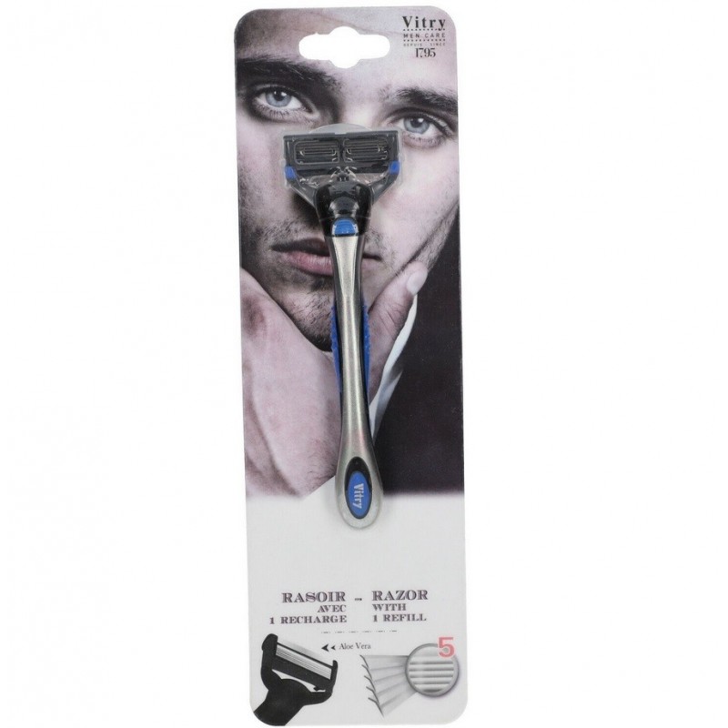 Vitry Rasoir 5 Lames permet un rasage confortable et précis en toute sécurité. Le rasoir est doté de 5 lames en acier inoxydable et 1 lame de précision. Tête flexible pour s’adapter aux contours du visage. Au contact de la peau, la bande protectrice libère des agents lubrifiants pour faciliter la glisse du rasoir. Ref RAS5L.