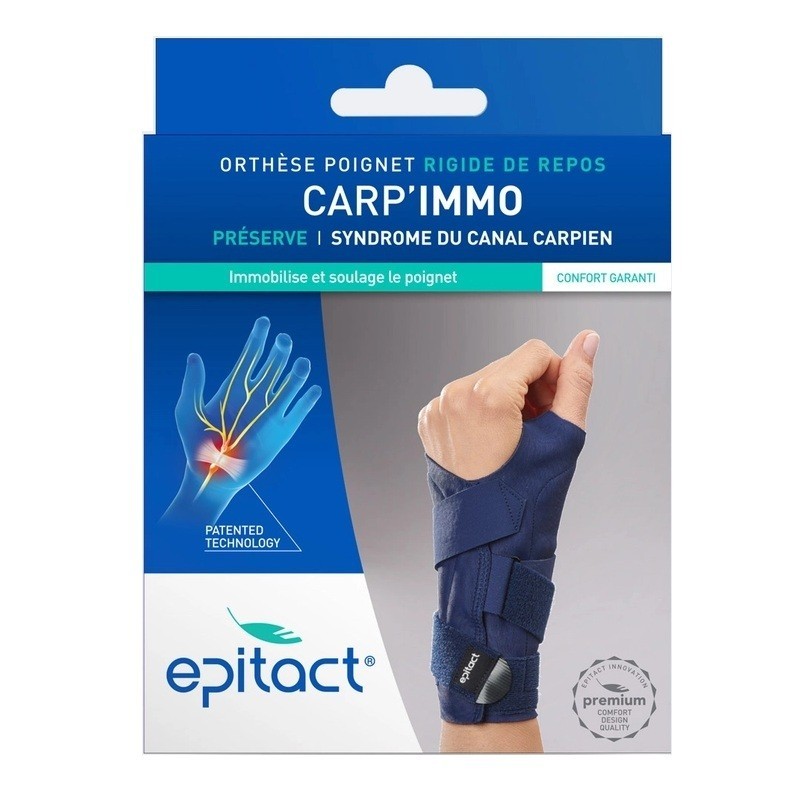Epitact Carp'Immo Orthese Poignet Rigide de Repos Droit Taille S soulage les douleurs liées au syndrome du canal carpien la nuit ou au repos. L’attelle de poignet soulage les douleurs à la main et les fourmillements causés par le syndrome du canal carpien. À porter la nuit, dans toutes les situations où vous n’utilisez pas votre main ou en période de crise, elle immobilise le poignet dans une position neutre qui limite les mouvements traumatisants à l’origine des douleurs. Cette attelle de nuit pour canal carpien convient également pour les autres troubles musculosquelettiques, inflammations et tendinites du poignet.
