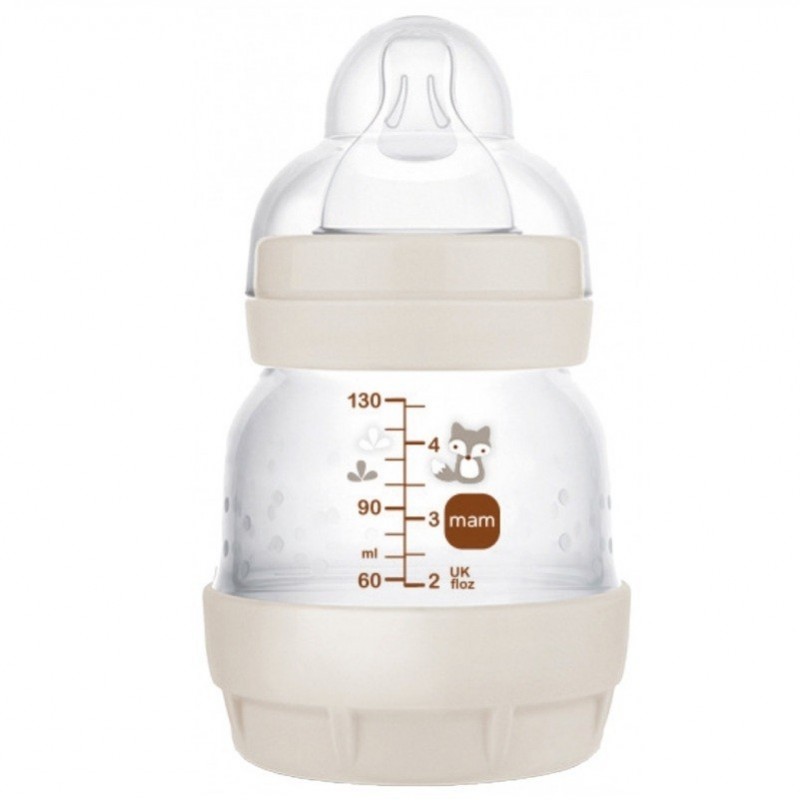 Mam Easy Start Biberon Anti-Colique 130 ml Tétine 0 Débit 0 Sable est un biberon spécial nouveau-né compatible avec l'allaitement maternel dont le système anti-colique est innovant.