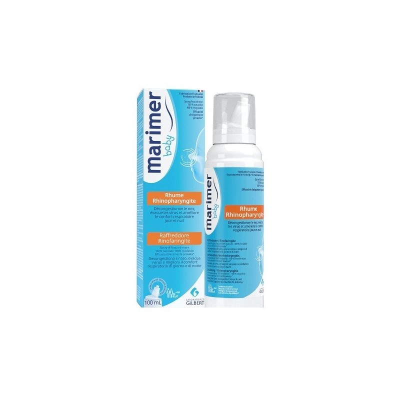 Marimer Baby Rhume Rhinopharyngite Nez Bouché 100 ml permet le nettoyage et la décongestion des fosses nasales en cas de rhume ou de fortes inspirations liées à un nez encombré. Jusqu’à l’âge de 6 mois, la respiration chez le nourrisson se fait exclusivement par voie nasale.