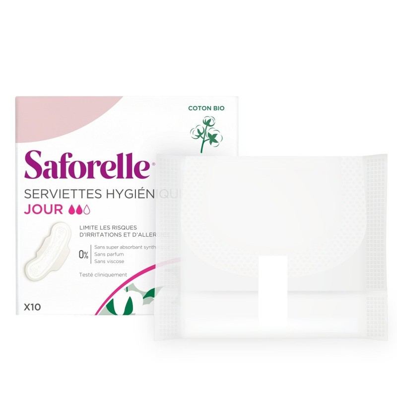 SAFORELLE SERVIETTES HYGIÉNIQUES JOUR 10 SERVIETTES HYGIÉNIQUES