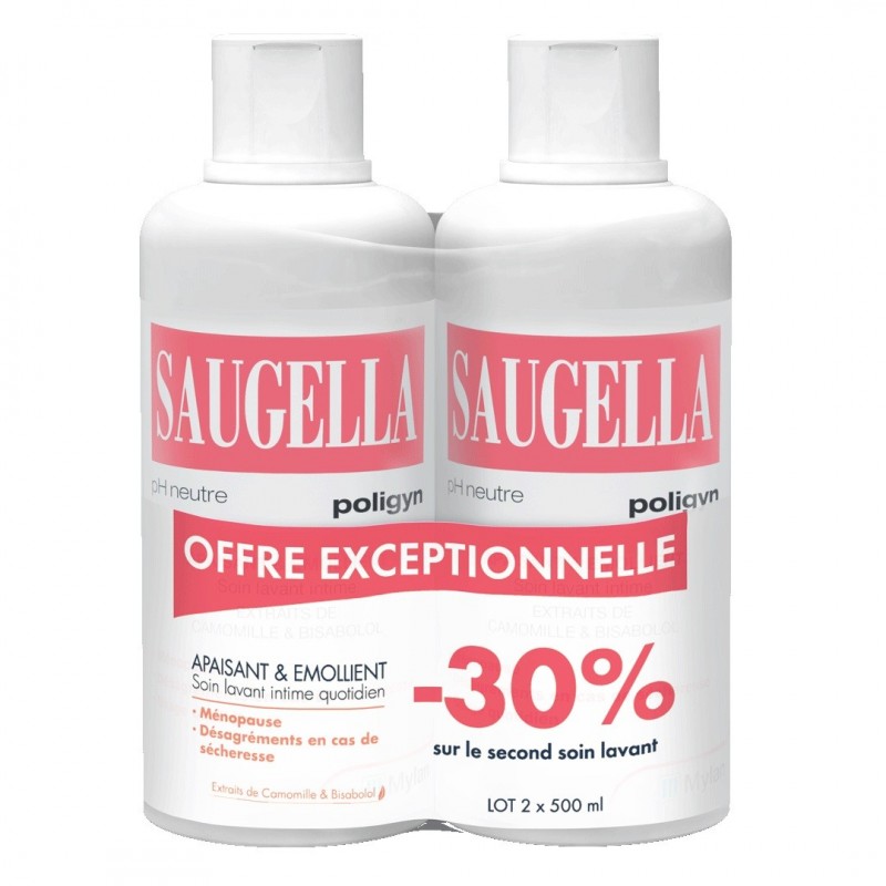 Saugella Poligyn 2 x 500 ml apaise et apporte confort aux muqueuses fragilisées.