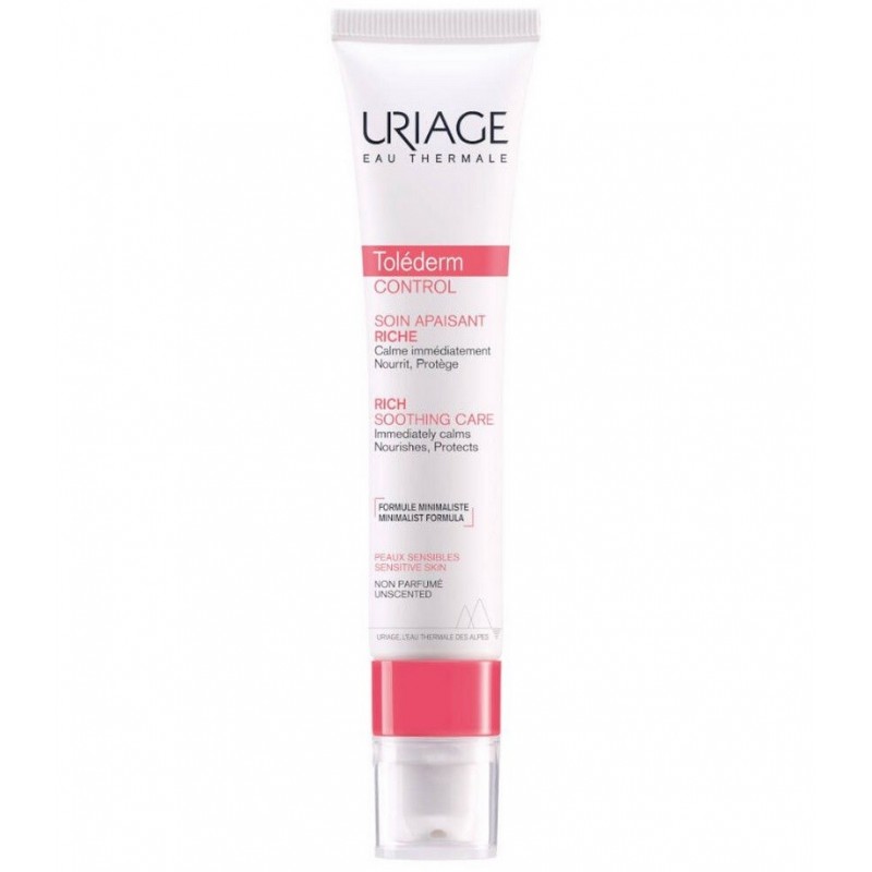 Uriage Toléderm Control Soin Apaisant Riche 40 ml est une crème aérienne qui apaise instantanément, hydrate, protège et offre un confort durable aux peaux sensibles, intolérantes, hyper-réactives et allergiques.
