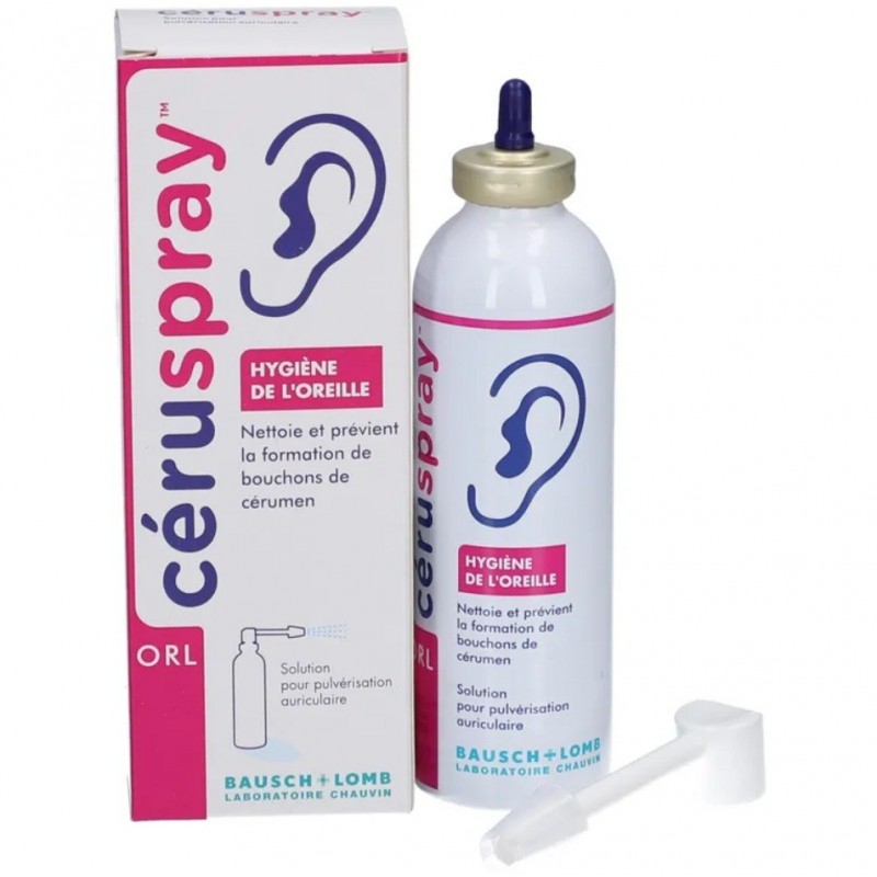 Bausch + Lomb Céruspray 50 ml est une solution de lavage ionique non agressive enrichie de tensio-actifs qui facilite l’élimination des résidus de cérumen et qui, utilisée régulièrement, évite la formation de bouchon.