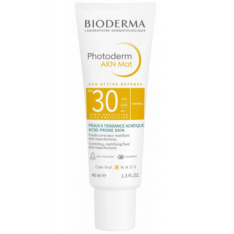 Bioderma Photoderm AKN Mat SPF30 Fluide Correcteur Matifiant 40 ml est la haute protection solaire matifiante qui limite les imperfections.