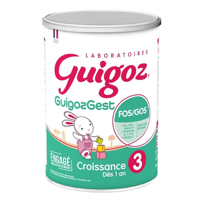 Guigoz GuigozGest 3 Croissance 12-36 Mois 800 g est un aliment lacté en poudre pour enfant en bas âge de 1 an à 3 ans. Formulé pour répondre à leurs besoins nutritionnels dans le cadre d'un alimentation diversifiée.