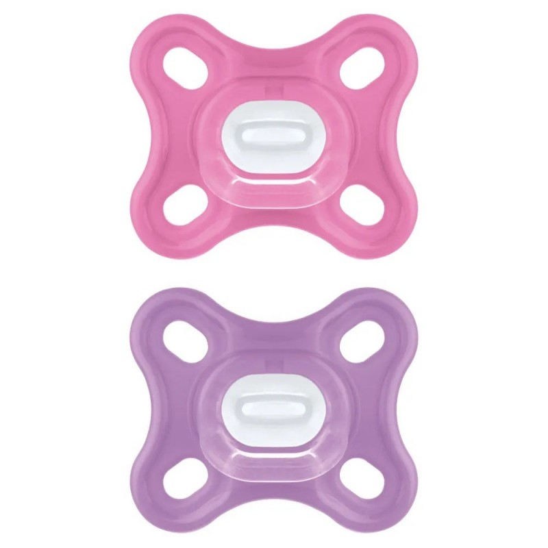 Mam Comfort 2 Sucettes Silicone 0 Mois et + Rose sont spécialement conçues pour les nouveau-nés même prématurés. La sucette Mam Comfort est entièrement composée de silicone. Elle est donc particulièrement hygiénique et facile à nettoyer.