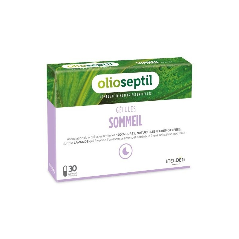 Olioseptil Sommeil 30 Gélules favorise l’endormissement et contribue à une relaxation optimale. C'est un complexe d’huiles essentielles 100% pures et naturelles et chémotypées, micro émulsionnées sur un support d’huile d’olive de première pression à froid, en gélule végétale. Ce complexe contient notamment de l’huile essentielle de lavande vraie, qui favorise l’endormissement et contribue à une relaxation optimale. L’huile essentielle de petit grain bigaradier favorise la détente et contribue à un bon équilibre nerveux. L’huile essentielle de marjolaine contribue au bon fonctionnement du système nerveux.