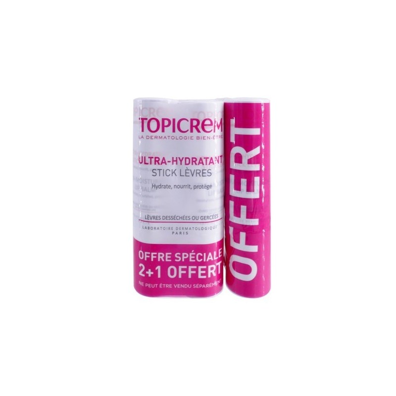 Topicrem HYDRA+ Stick Lèvres 3 x 4 g répare intensément les lèvres contre la sécheresse et les gerçures. Ses actifs naturels : beurre de karité, cire de carnabau et cire de candelilla, permettent d'hydrater, nourrir et protéger les lèvres. Testé sous contrôle dermatologique.