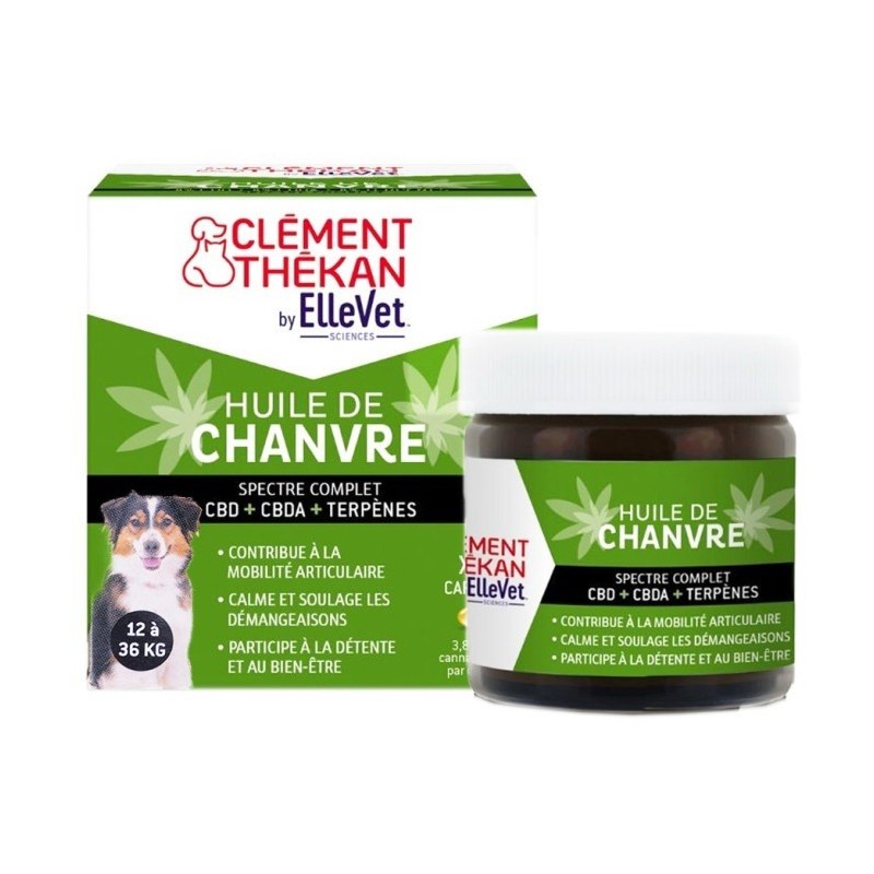 Clément Thékan Huile de Chanvre Chien 12-36 kg 45 Capsules contribue à la mobilité articulaire, favorise un bon fonctionnement des articulations. Il calme et soulage les démangeaisons. Il participe à la détente et au bien-être des chiens. Huile de chanvre à spectre complet : contenant du cannabidiol (CBD), de l'acide de cannabidiol (CBDA) et des terpènes naturellement présents dans la plante de chanvre.