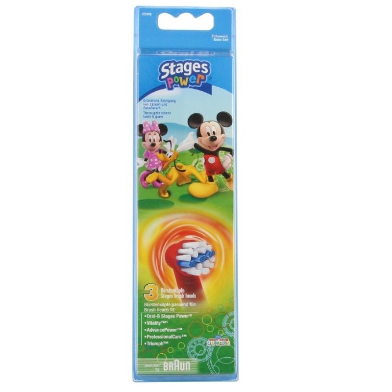 Oral-B Stages Power Brossettes de Rechange Extra Soft Mickey Mini pour brosse à dents électrique Oral-B Stages Power avec les personnages de Disney sont spécialement conçues pour les enfants dès 3 ans. Elles sont dotées de poils ultra-doux adaptés aux jeunes gencives, d’une plus petite brossette pour les petites bouches et d’une tête ronde unique pour envelopper chaque dent. Chaque brossette comporte des personnages Disney que vos enfants adoreront.