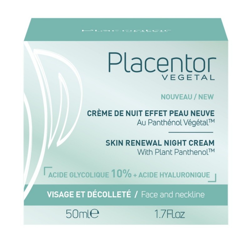 Placentor Vegetal Crème de Nuit Effet Peau Neuve 50 ml à l’action peeling agit durant la nuit pour un effet peau neuve dès le premier réveil.