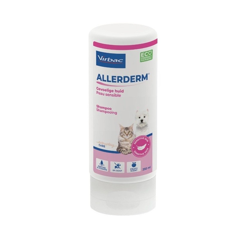 Virbac Allerderm Shampooing Peau Sensible 250 ml est un shampooing doux, sans savon, à base d’avoine naturelle pour l’hygiène quotidienne des chiens et chats de tout âge. Il préserve l’équilibre de la flore microbienne.