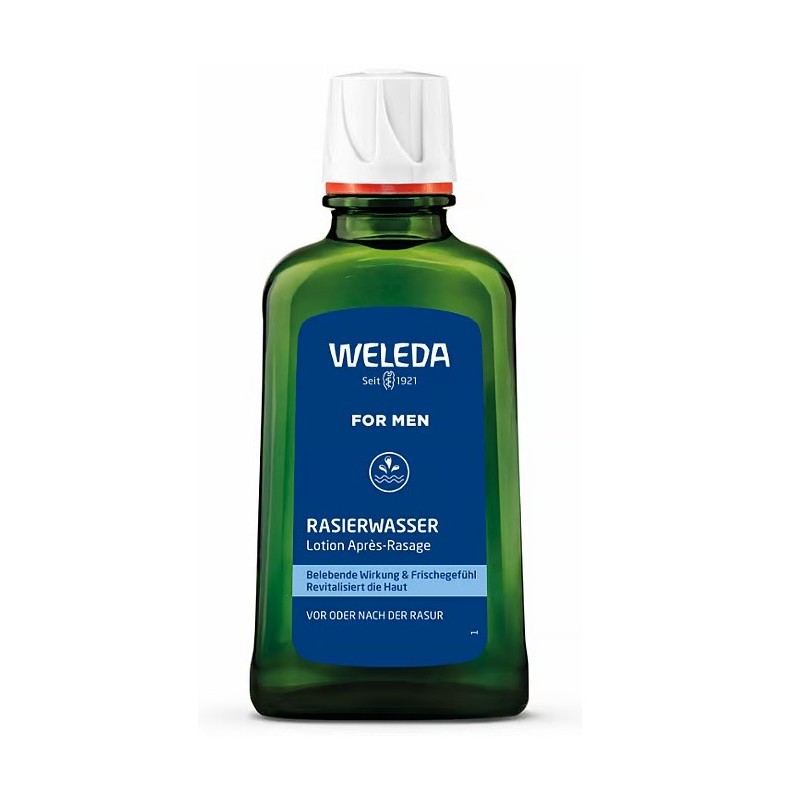 Weleda Homme Lotion Après-Rasage 100 ml rafraîchit et tonifie l'épiderme grâce à sa richesse en huiles essentielles. Cette lotion à base d'eau distillée d'hamamélis aux vertus astringentes et d'extrait de racine de myrrhe apaisant a été conçue pour une utilisation aussi bien avant qu'après le rasage, sur peau sèche ou humide. Tolérance cutanée testée sous contrôle dermatologique.